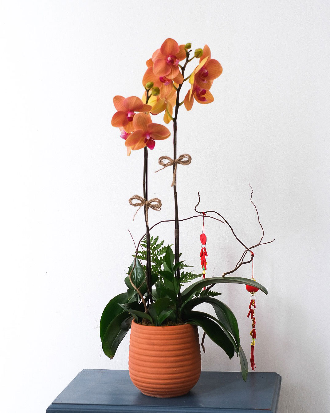 Chậu hoa lan hồ điệp mini hồng 5 cây 2 vòi