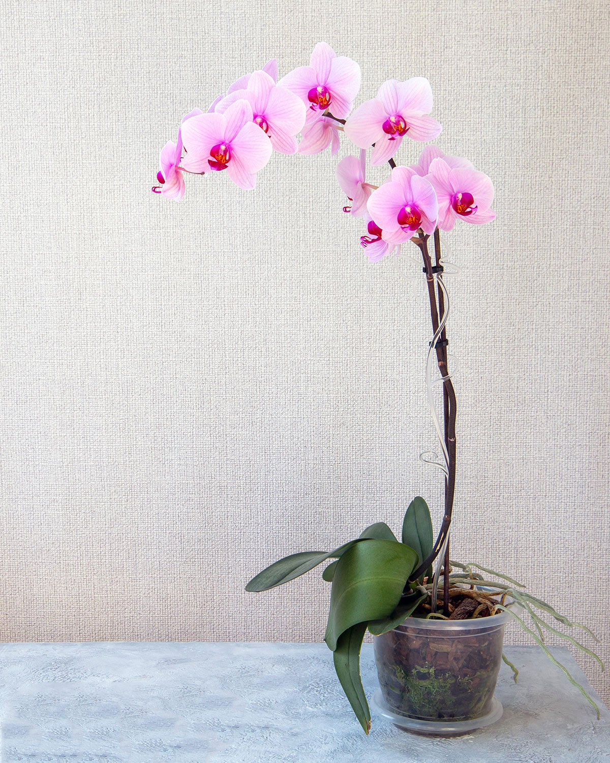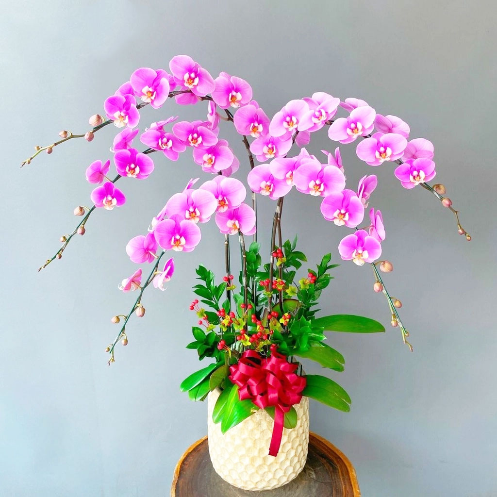 Chậu hoa lan hồ điệp mini hồng 5 cây 2 vòi