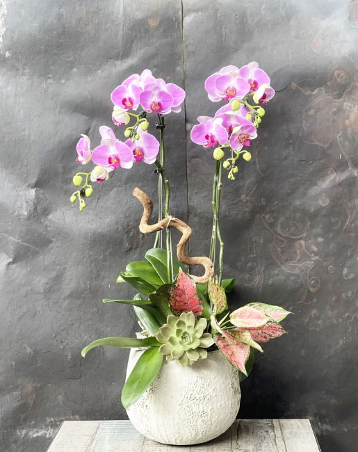 Chậu hoa lan hồ điệp mini hồng 5 cây 2 vòi