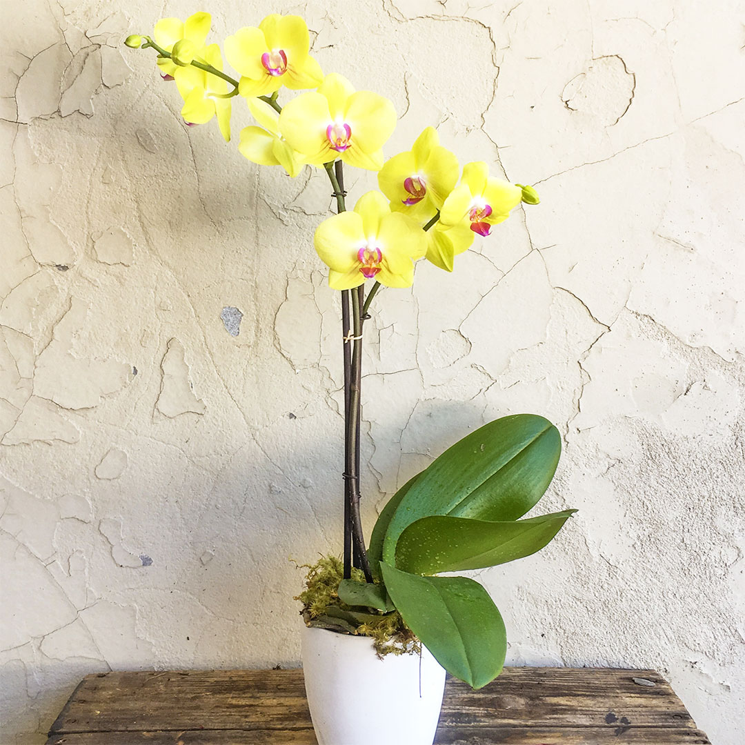 Chậu hoa lan hồ điệp mini hồng 5 cây 2 vòi
