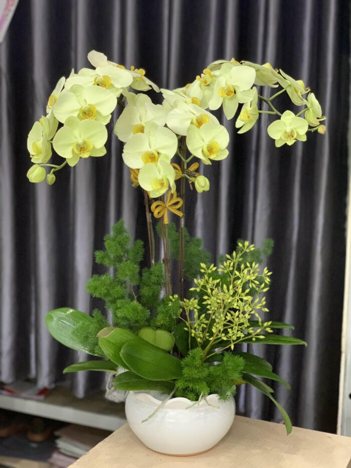 Chậu hoa lan hồ điệp mini hồng 5 cây 2 vòi