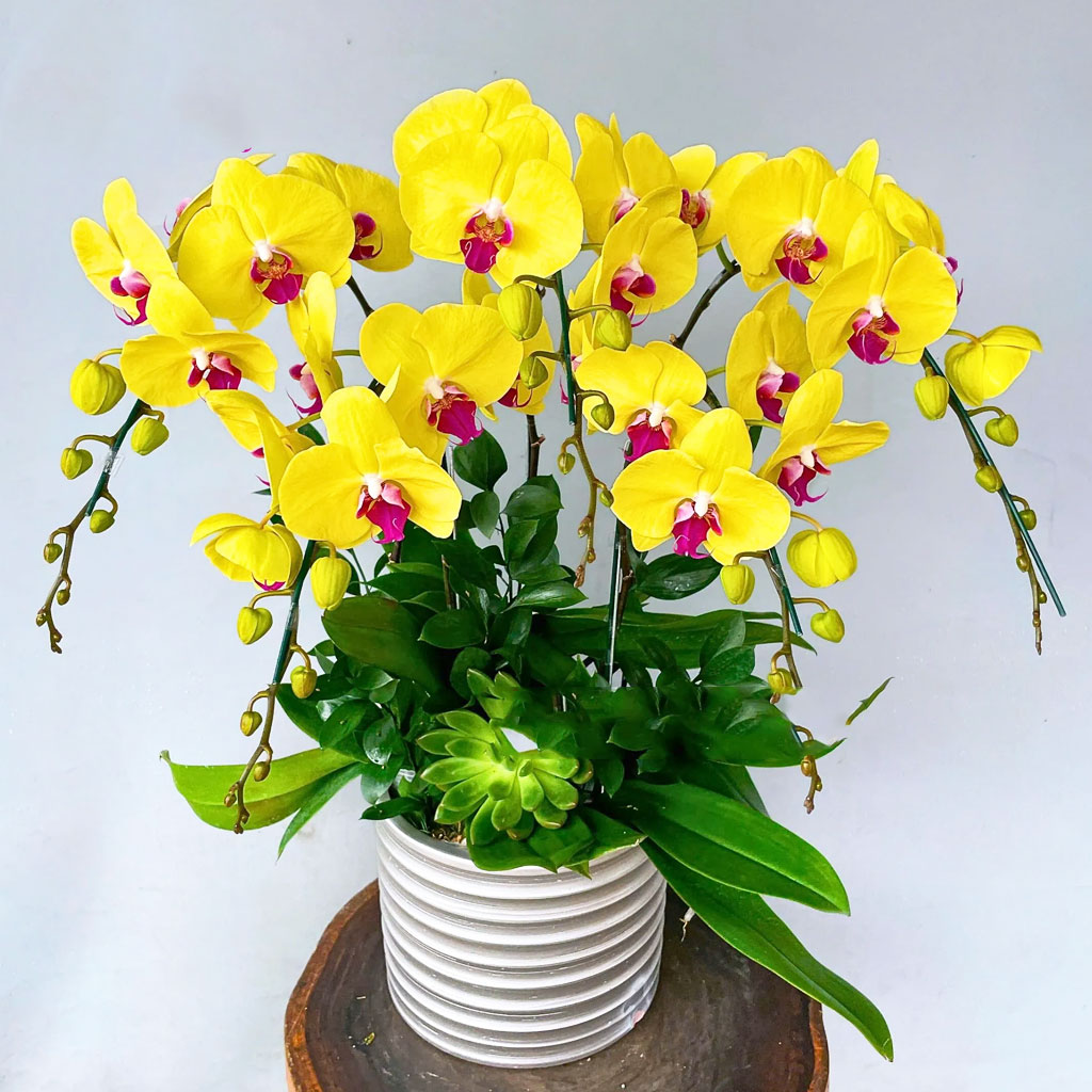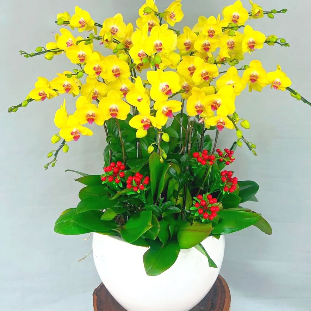 Chậu hoa lan hồ điệp mini hồng 5 cây 2 vòi